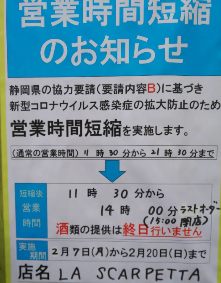 お知らせ 2/7より終日アルコールの提供は行っておりません。お客様にはご迷惑をおかけしますが、よろしくお願い致します。 2/7より終日アルコールの提供は行っておりません。お客様にはご迷惑をおかけしますが、よろしくお願い致します。 TOPICS一覧へ 電話・問い合わせをする